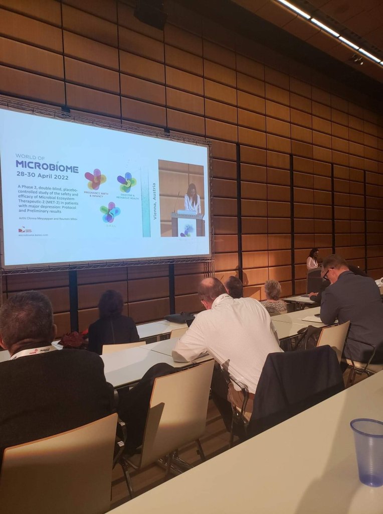 Arthi presented her research titled, “A phase 2, double-blind, placebo-controlled study of the safety and efficacy of microbial ecosystem therapeutic-2 (MET-2) in patients with major depression: protocol and preliminary results” as an oral presentation.