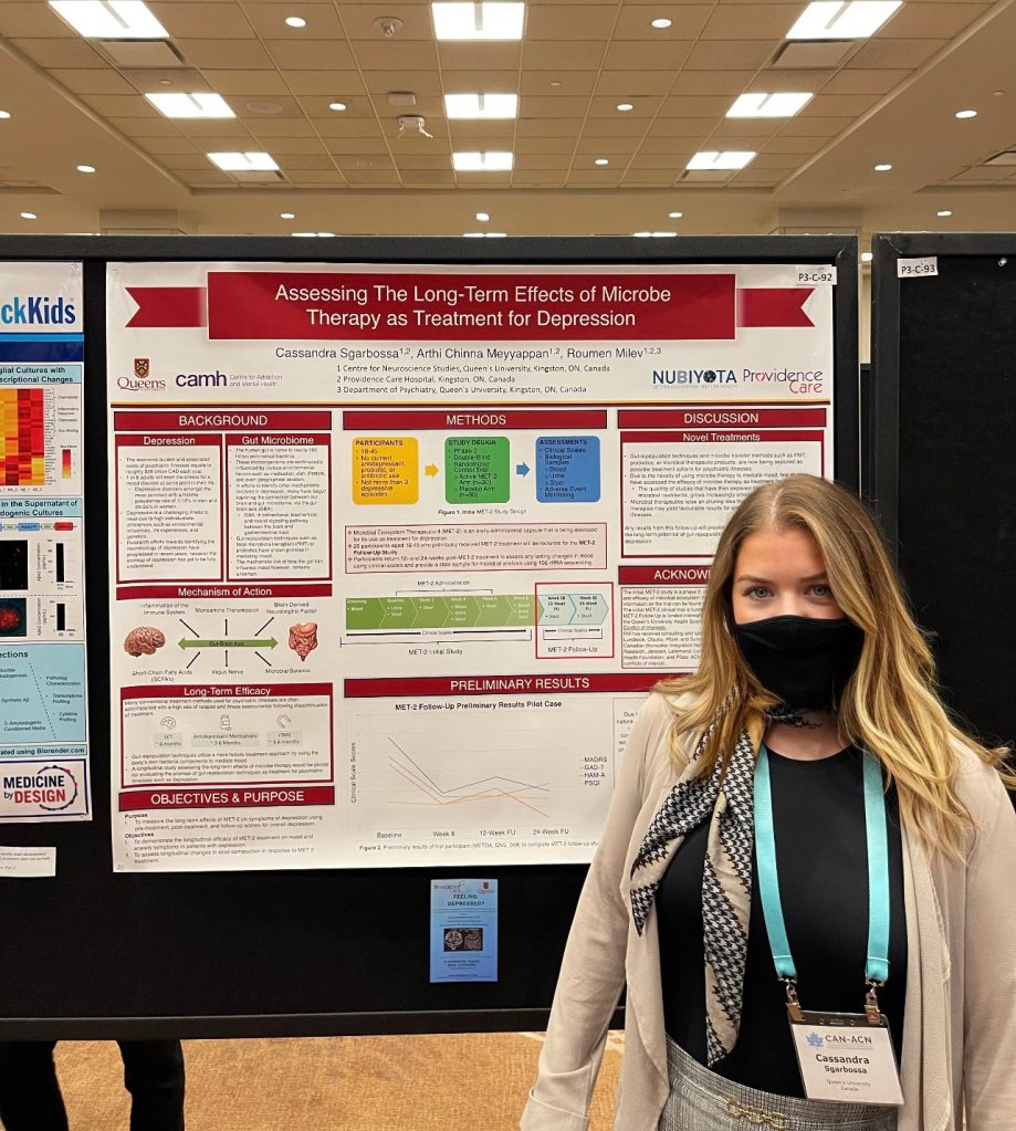 PhD student Cassandra Sgarbossa presented her research titled, “Assessing the Long-Term Effects of Microbe Therapy as Treatment for Depression” at the 15th Annual Canadian Association for Neuroscience (CAN) conference which was held from May 12-15, 2022 in Toronto, Canada.