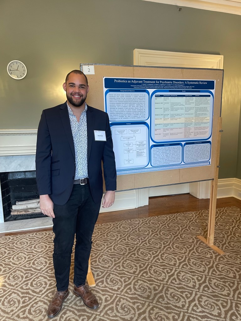 His poster presentation was titled, “Probiotics as Adjuvant Treatment for Psychiatric Disorders: A Systematic Review”.