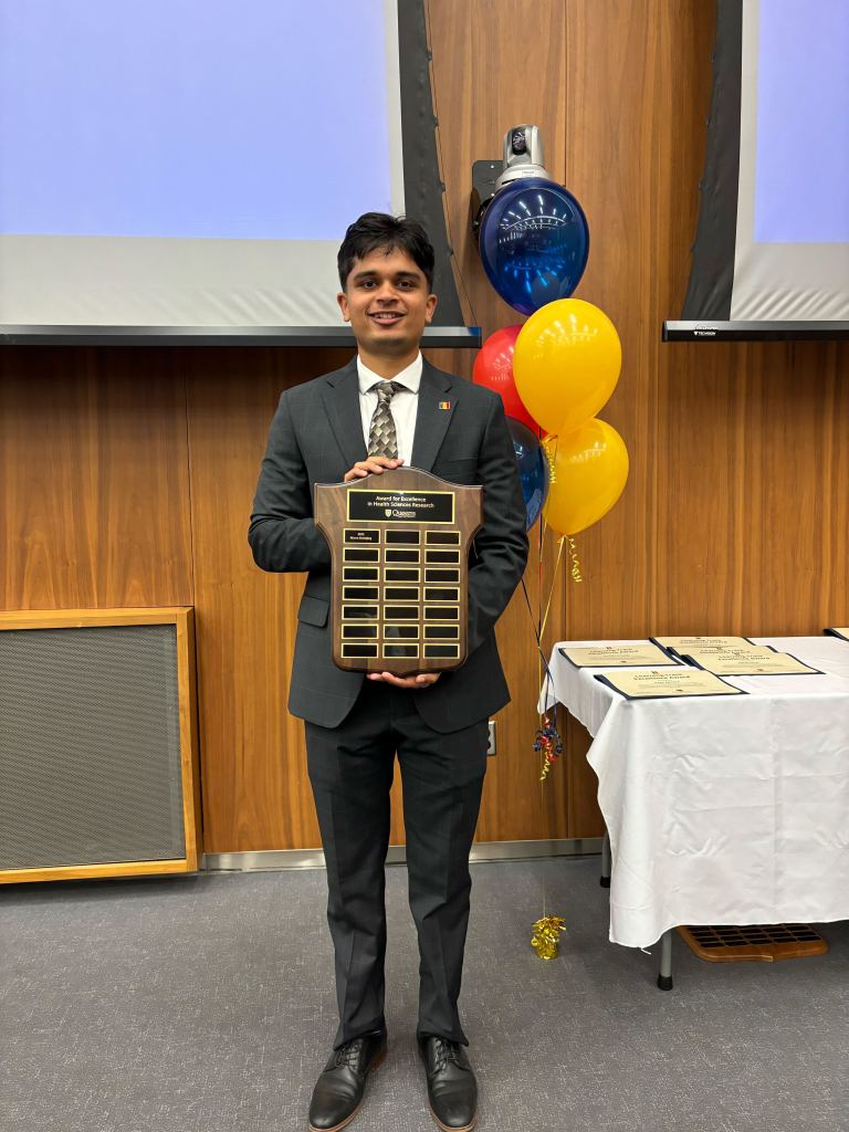 Another congratulations to undergraduate research student, Dharmayu Desai, for being the recipient of the 2024 Award for Excellence in Health Sciences Research at Queen’s University. Dharmayu will be starting at the Queen’s University School of Medicine this upcoming fall. We wish him all the best as he moves onto this new chapter!